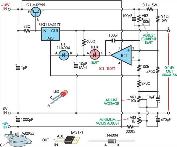 15 A Adjustable Power Supply Circuit - Power Supply Circuits